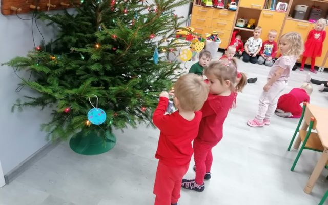 Misie🐻 Również w grupie maluszków zagościła pachnąca choinka. 🤗🎄🌟🎅 Dzieci z radością ozdabiały drzewko i wykonały urocze ozdoby choinkowe.