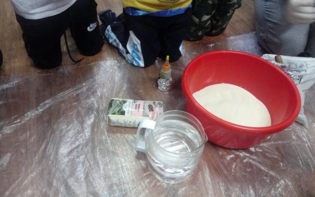 Kotki🐈 Sensoryczne piątki w grupie Kotków. 🖐️🤗🤩🔝 Dziś robiliśmy “kaszolinę”, plastyczną masę. Nasze paluszki ćwiczyły ugniatanie, kulanie i wesoło się przy tym bawiły.