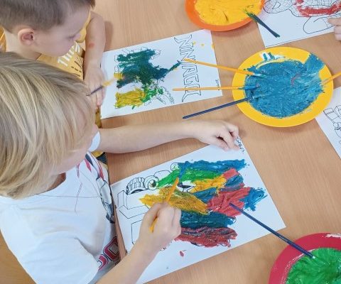 Pszczółki🐝 W tym tygodniu malujemy rosnącymi farbami! To super zabawa kiedy nasza farba rośnie. 😊🎨🖌️😉 Zapoznajemy się także z literą E.