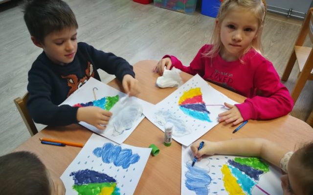 Sówki🦉 “Pomysłowe parasole” – praca plastyczna wykonana z masy rosnącej, kredek, kleju i chusteczek higienicznych. ☂️🌈☂️🌈☂️🌈☂️