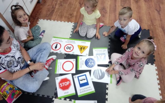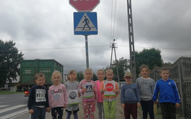 🐈Kotki🐈 Przedszkolacy poznali zasady bezpiecznego poruszania się po drodze. 👮♀️🚓🏡🚲🧏♀️🚑👮♀️🚓🏡🚲🧏🚑 Na spacerku mieli okazję rozpoznawać znaki drogowe.