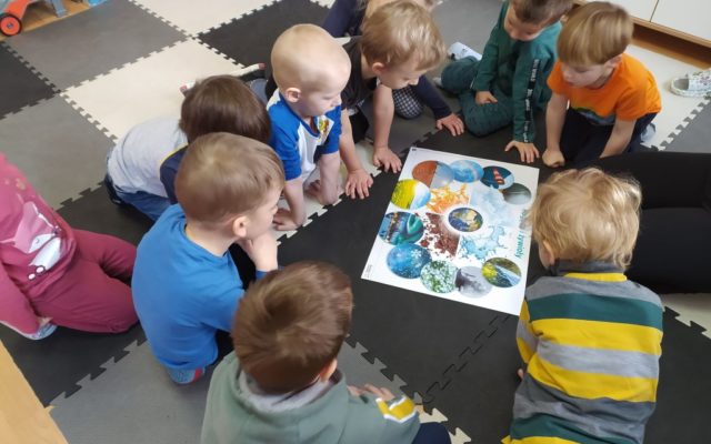 🐝Pszczółki🐝 Pszczółki poznają cztery żywioły : ogień, wodę, powietrze, ziemię i wykonują plakaty żywiołów.⚪️🔵🟠🟤