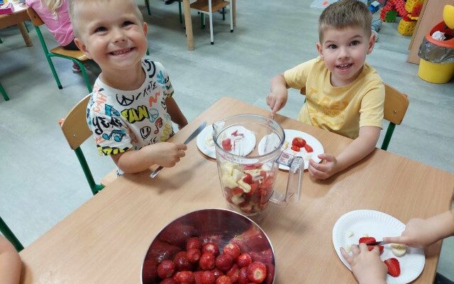 Koale🐨 Robimy zdrowy, owocowy jogurt! 🍓🍐🍎🍌 Zajęcia kulinarno – sensoryczne w grupie maluszków.