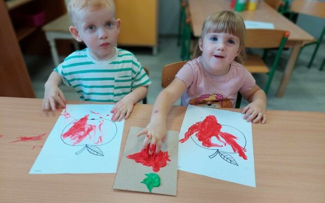 Koale🐨 Pierwsza praca plastyczna Koali – jabłko i gruszka.🍎🍐🍎🍐🍎🍐