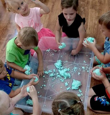Biedronki🐞 Fotorelacja z czwartku w grupie Biedronek. Zabawa sensoryczna była świetna! Poznajemy świat wszystkimi zmysłami 😊