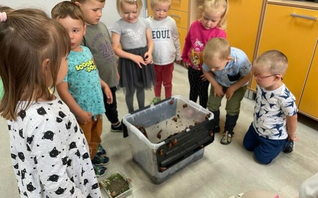 Misie🐻 Maluszki poznają hodowlę ślimaków. 🐌🍀☀️ Te małe stworzenia wzbudziły ogromne zainteresowanie wśród przedszkolaków!