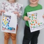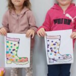 Biedronki🐞 Maluszki w jesiennych rytmach-praca plastyczna “Moje kalosze”. Tańczymy, bawimy się, dobieramy części ubioru odpowiedniego dla pory jesiennej. 👢👞👟
