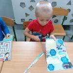 Misie🐻 Zajęcia popołudniowe w grupie Misiów. Trenujemy nasze małe paluszki. 🖐️🗞️✂️🕐