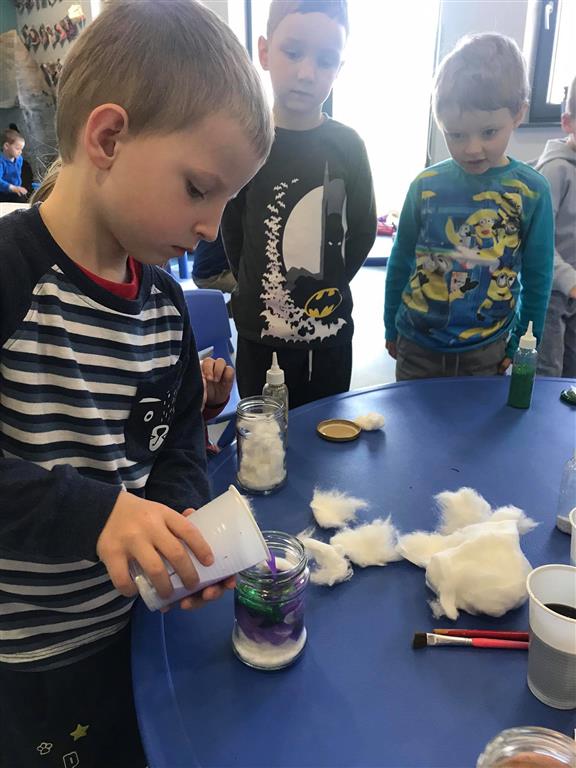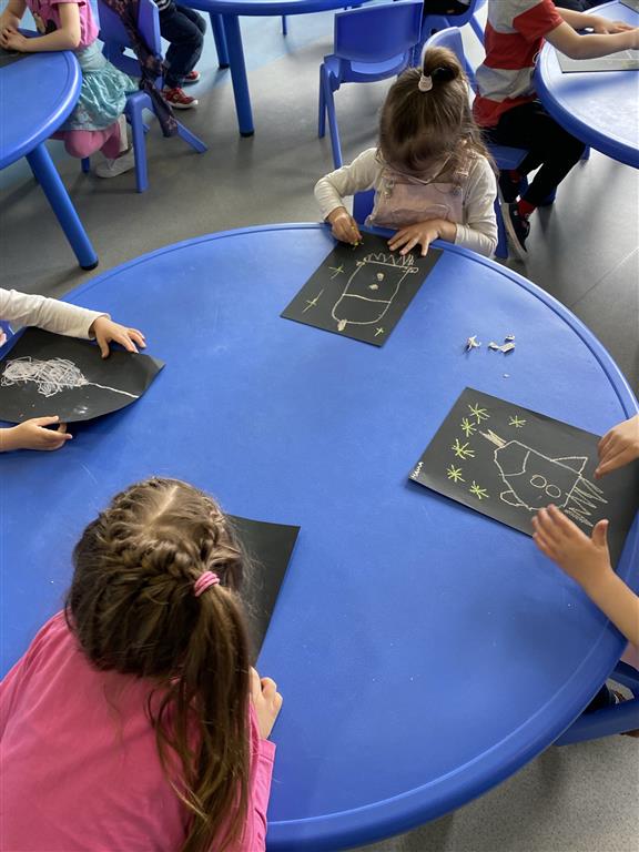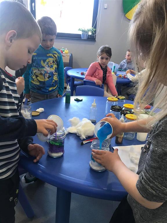ćwiczyliśmy przy tym kompetencje matematyczne i językowe, wykonaliśmy kilka prac plastycznych, a także stworzyliśmy swój własny kosmos w słoiku ![]()