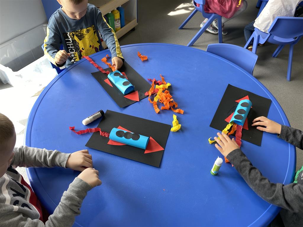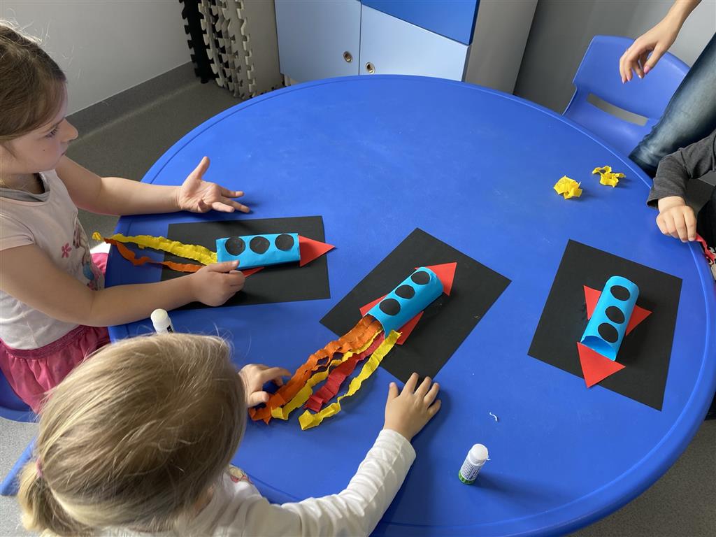 ćwicząc przy tym małą motorykę, poczuliśmy się też jak kosmonauci ćwicząc naszą koordynację ruchową