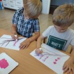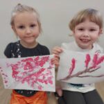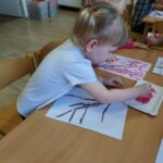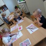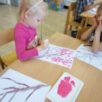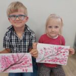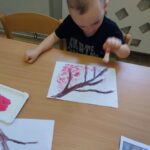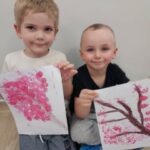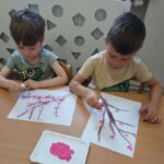 Żabki🐸 Gałązka kwitnącej wiśni – praca plastyczna Żabek. 🤗🌿🌸🤗🌿🌸