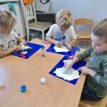 Żabki🐸 Żabki podczas wykonywania prac plastycznych. 🤩👍🍀🤗 🙂