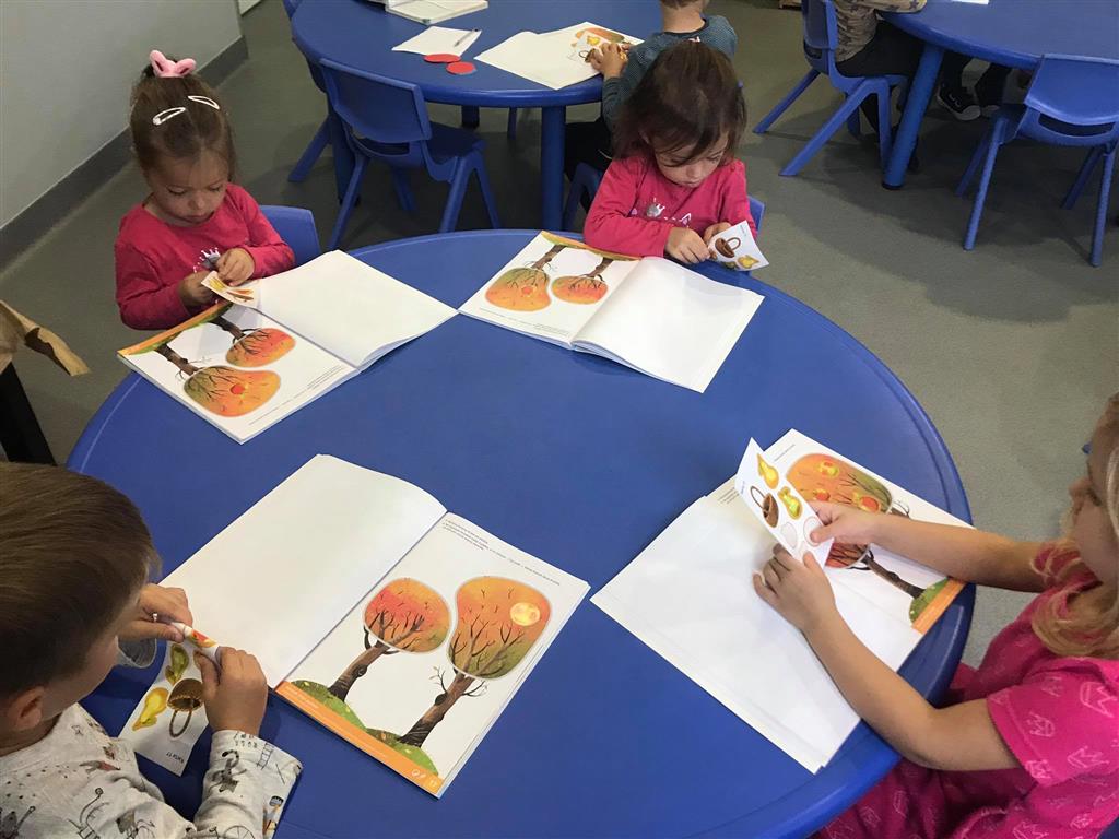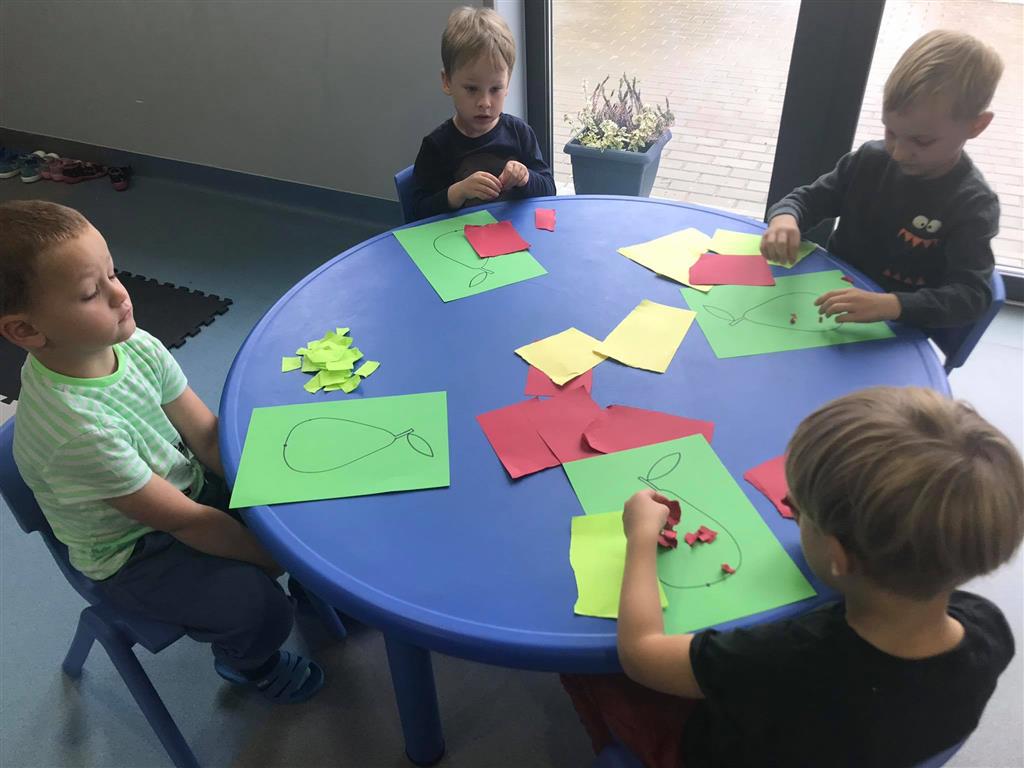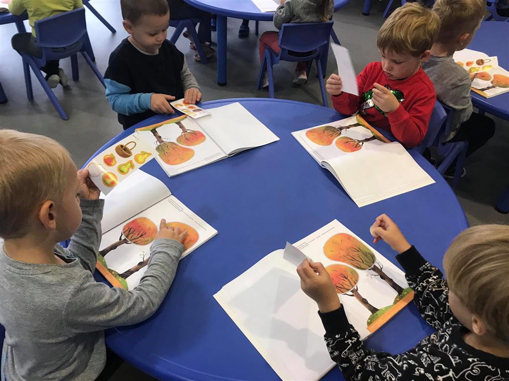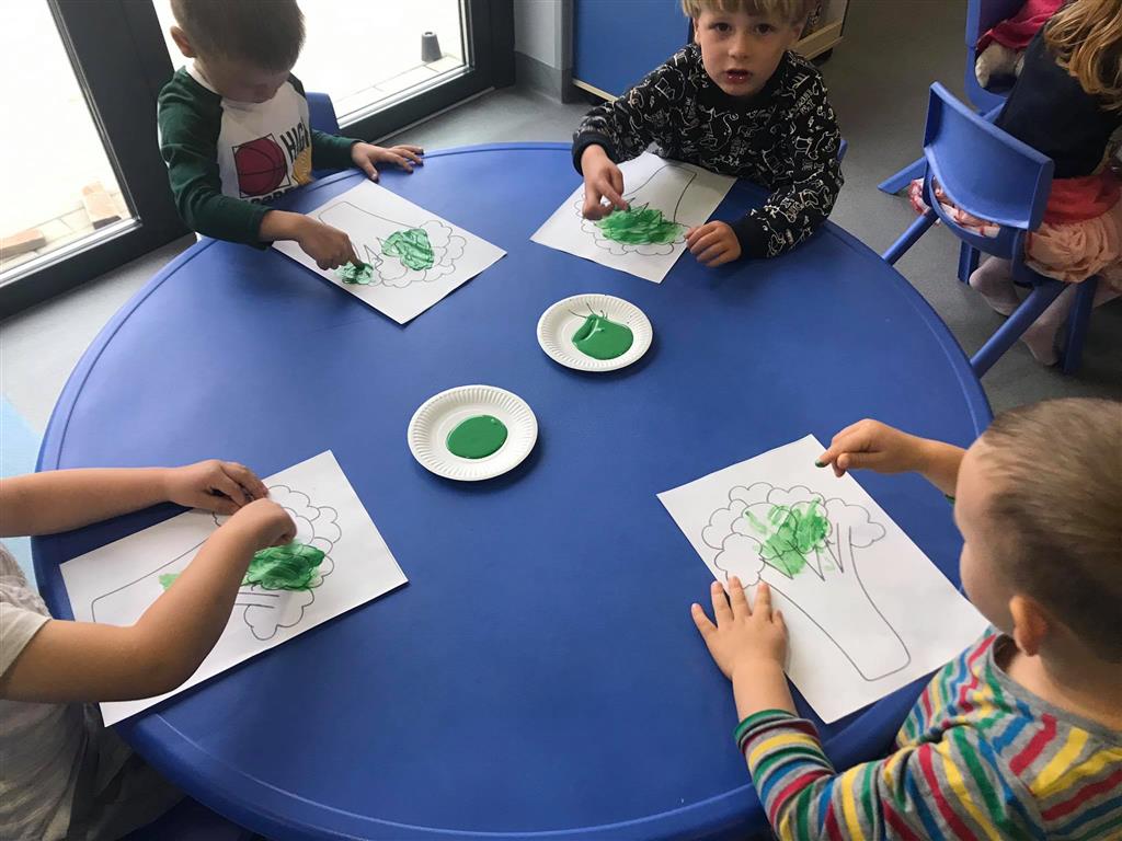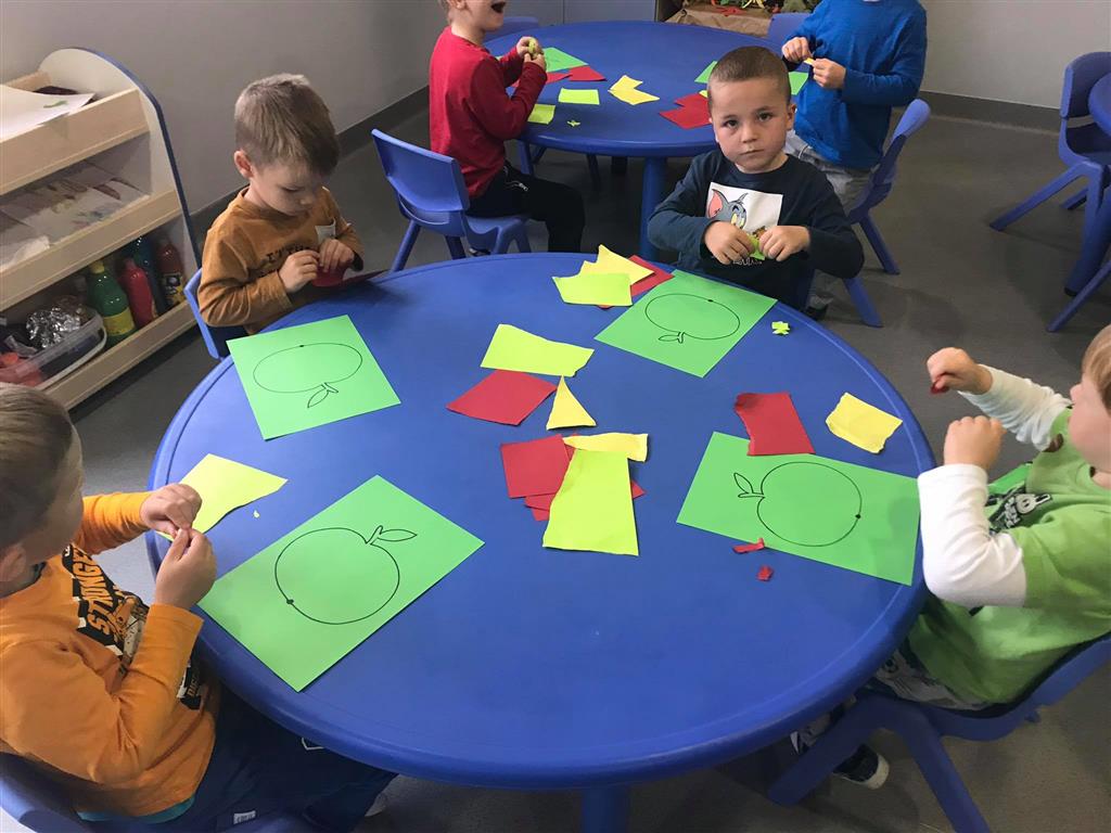 W minionym tygodniu obchodziliśmy Dzień Drzewa – z tej okazji rozmawialiśmy o drzewach: ich rodzajach oraz owcach i darach 🌳🌲🍂 mówiliśmy o jesieni w sadzie 🍎🍏🍐przeliczaliśmy, segregowaliśmy, poznaliśmy kształt koła, układaliśmy rytmy oraz ćwiczyliśmy paluszki 🔵🔵🔴🔵🔵🔴
